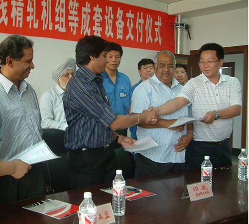 2008年8月我公司的高線精軋機組等設備成功出口印度SURANA公司,實現(xiàn)國產(chǎn)設計速度115m/s,保證速度95m/s的高線設備首次出口。